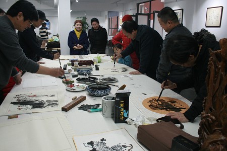 美术学院党总支、院部门工会注重发挥学院的特色和优势,开展丰富多彩的教职工文化生活活动。3月12日下午,美术学院组织全院女教职工前往设在集美的厦门市美术家协会工作室举行现场笔会活动。学院领导挥毫泼墨,在现场以书法、人物画、花鸟画等形式进行精彩的艺术创作和交流。在“三八”妇女节来临之际,美术学院以这种特殊的形式向学院女教职工们表示节日的问候和祝福。(美术学院部门工会 周方方)