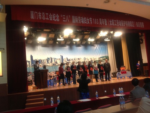 2013年3月8日上午,厦门市总工会女工部在市总工会一楼多功能厅举办了纪念“三八”国际劳动妇女节103周年暨《妇女劳动保护特别规定》知识竞赛。