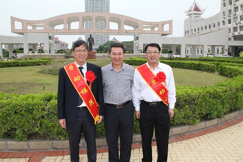中午,我校在新校区东大门举行仪式,欢送曹敏杰、邹卫东两位教授参加厦门市劳动模范表彰大会。校党委副书记、工会主席罗良庚,校工会负责人以及生物工程学院、理学院师生代表参加了欢送仪式。