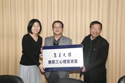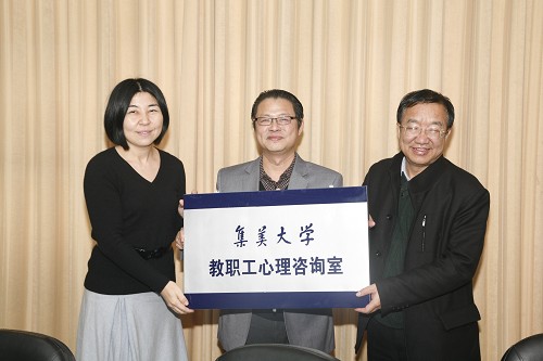 2月26日下午,集美大学教职工心理咨询室和宣泄室在我校政法学院挂牌成立。校工会副主席庄东生,政法学院院长杨贵华、党委副书记郑秀坤、部门工会主席肖金发、社会学系教师、学院部门工会委员及校工会干部等参加挂牌仪式。肖金发主持挂牌仪式。