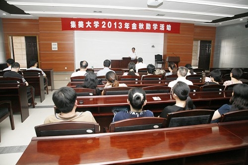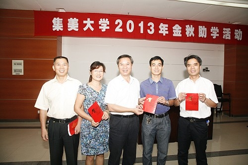 9月11日下午,集美大学2013年“金秋助学”活动在尚大楼108会议室举行。校党委副书记、工会主席罗良庚、各有关部门工会主席、今年子女考上大学的教职工以及子女在读大学的困难教职工代表等40多人参加活动。