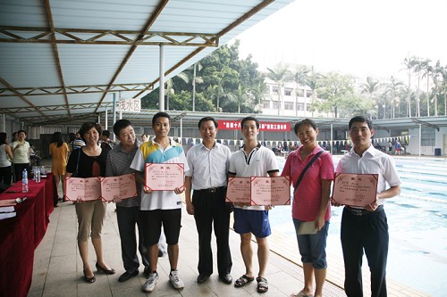 下午3:00大会进行预赛场次和泳道抽签,3:30大会组委会宣布比赛开始,校党委副书记、纪委书记、工会主席罗良庚亲临比赛现场观看和指导,各参赛单位领导也到场关心、指导。