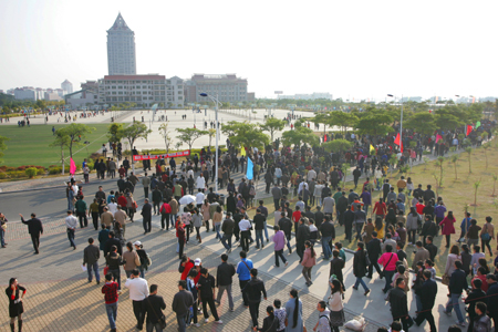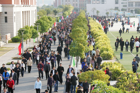 为庆祝厦门经济特区建设30周年,迎接2012新年的到来,进一步推动我校全民健身活动的深入开展,促进校园文化建设,12月28日下午,校工会在新校区举行第十届教职工迎新年健步行活动。校党委书记辜芳昭,校党委副书记、纪委书记、工会主席罗良庚,校长助理郑志谦、叶光煌和来自全校近3000名教职工、工会会员参加这一盛大活动。体育学院副院长、校工会体育部部长施纯志教授主持开幕式。