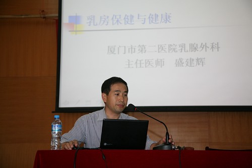 11月16日下午,校工会女工委在校教工活动中心多功能厅,聘请厦门市第二医院乳腺外科主任医生、医学硕士盛建辉作“乳腺健康与保健”专题讲座。讲座由校工会常务副主席、女工委主任陈俊彦主持,校工会副主席庄东生、校工会女工委副主任陈萌、各部门工会女工委员以及部分女教职工100多人参加了讲座。