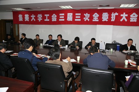 2月27日下午,集美大学第三届工会委员会第三次全委(扩大)会在教工活动中心三楼会议室召开。校工会两委委员及各部门工会主席出席了会议。会议由校工会副主席庄东生主持。