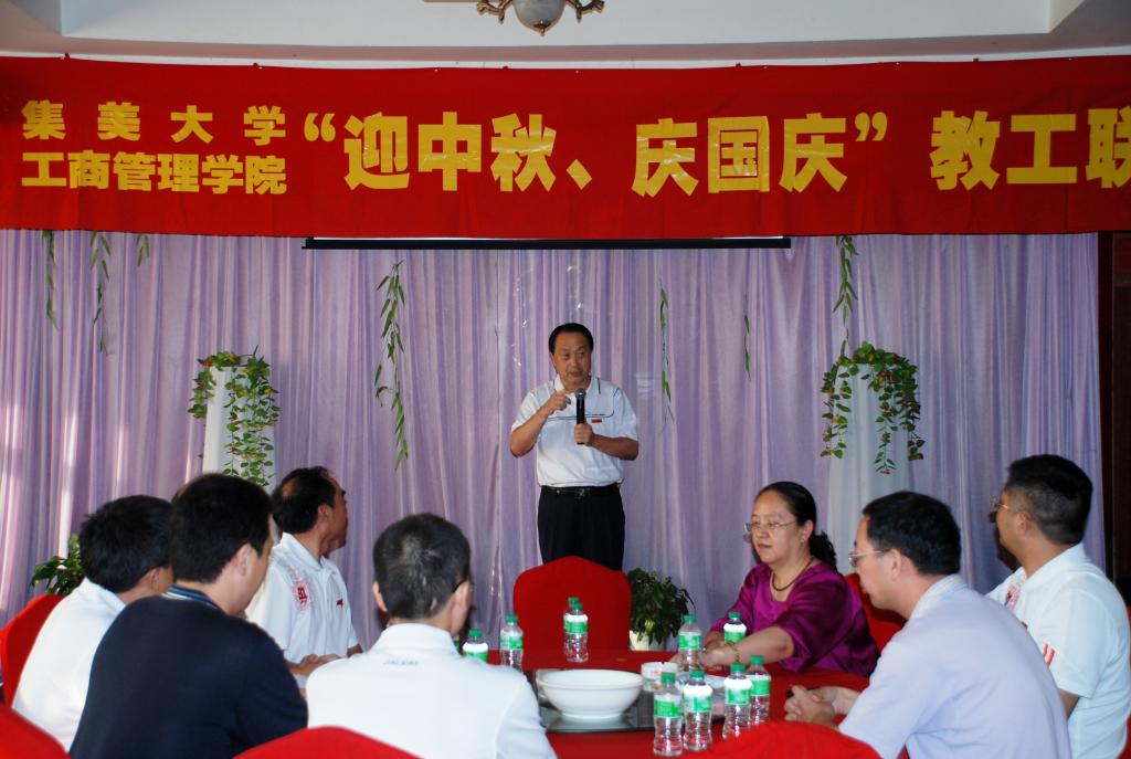 9月23日下午,工商管理学院在国际学术交流中心举行“迎中秋,庆国庆”教工联欢会,张向中书记应邀出席联欢会。联欢会节目丰富多彩,有扇子舞、拉丁舞、外教吉他弹唱、独唱、二人唱、小组唱等,最后全院教职工齐声高唱《今天是你的生日,我的中国》,讴歌新中国成立60周年的辉煌成就,将联欢会推向高潮。张书记在联欢会作了即席发言,对大家充满热情的节目表演表示赞赏,并祝伟大祖国繁荣昌盛,学院事业蒸蒸日上,教职员工节日快乐。(工商管理学院部门工会 陈蓉蓉)