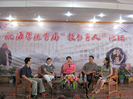 论坛由院团委副书记李祥军主持,邀请到物流教研室兰培真老师、航管教研室辛林老师、航海教研室杨神化老师、辅导员任璐颖老师与大家分享多年教书育人的经验和体会。五位老师联系自身经历,围绕教师队伍建设、毕业生论文设计、教风学风的改进、科研课题的开展、辅导员及班主任工作等大家关心的话题侃侃而谈。兰培真老师首先从本教研室的成长历程出发,就如何培养青年教师、新专业建设以及如何开展教研室活动等话题讲述自己的观点和工作体会;辛林老师则以诙谐幽默的语言表达了她对当前教风学风以及考风的看法,并举例说明如何在课堂上吸引学生的注意力,提高教学效率,引得台下掌声连连;杨神化老师结合自己由辅导员走向教学岗位的特殊经历,分享了他对于两种不同教育岗位的深切感受,还就如何取得科研项目获得科研经费以及青年教师如何顺利通过“教学关”等话题给出了很多建议;任璐颖老师则重点说明辅导员工作的具体内容以及辅导员工作在学生成长成才过程中所起的作用,让大家对辅导员工作有了一个新的认识。论坛进行过程中,坐在台下的校“优秀班主任”黄娟老师还自身工作经历讲述了如何做好高校班主任工作。论坛现场气氛活跃、台上台下互动良好,听众时而会心微笑,时而报以热烈掌声,学院院长翁跃宗、党委书记林斯丰还代表学院向五位老师赠送了颇具特色的礼物,这一匠心独具的环节最终将现场气氛推向高潮。
