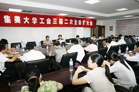 6月15日,集美大学工会召开三届二次全委扩大会议,会议的主要内容是通报第三届工会委员会机构设置、常委工作分工情况以及布置下阶段工会要开展的主要工作等。校工会两委委员、各部门工会主席出席会议。