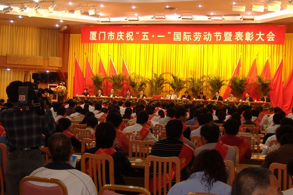 大会有叶重耕副市长主持,市总工会党组书记、常务副主席陈永红宣读表彰决定。今年厦门市有2家先进集体获得全国“五一”劳动奖状、4名先进个人获得全国“五一”劳动奖章;13家先进集体获省“五一”劳动奖状、25名先进个人获省“五一”劳动奖章;1个班组获得省“工人先锋号”荣誉称号,同时20个先进集体获得厦门市“五一”劳动奖状、153名先进个人获得厦门市“五一”劳动奖章、110个班组获得厦门市“个人先锋号”荣誉称号。
