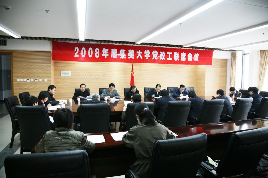 12月31日上午,2008年度集美大学党政工联席会议在我校尚大楼22楼会议室召开。出席会议的校领导有党委书记张向中、党委副书记、校长辜建德、党委副书记、纪委书记罗良庚、党委常委、副校长关瑞章、黄德棋、校工会主席李金水以及校党政工共建“教工之家”领导小组成员、有关职能部门负责人周学智、郑志谦、黄爱斌、徐德辉、柯细辉、王仁敬、高伯乐、骆朝泉、陈俊彦、潘登等同志。会议由张向中主持。