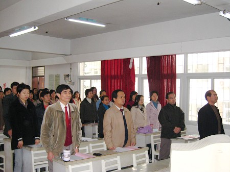 大会在庄严的国歌声中拉开帷幕。施若谷院长作《团结奋进 开拓创新 推动教师教育学院再上新台阶》的工作报告。他首先对长期以来为教育事业孜孜不倦、辛勤劳动的全体教职工致以衷心的感谢和崇高的敬意,客观地回顾了学院一年多来围绕迎接本科教学工作水平评估、落实学校“双创”、配合学校做好集美大学90周年校庆暨纪念陈嘉庚创办师范教育90周年大会及学院改革与发展等方面开展的各项工作,肯定了一年来学院在人才培养、科学研究和为基础教育服务等方面取得明显成效,有针对性地提出了今后学院的工作目标、思路和措施,号召全体教职工在新的一年里,继续传承嘉庚精神,高举教师教育大旗,为基础教育培养更多新型师资,团结奋进,开拓创新,推动教师教育学院再上一个新的台阶!