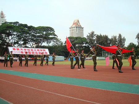 11月1日,信息工程学院在体育学院运动场举办首届田径运动会。校党委常委、副校长黄德祺,校工会主席李金水,校工会副主席骆朝泉、陈俊彦,学生处处长王益丁,宣传部副部长梁振坤,校团委副书记吴星旭,校体育委员会秘书长、体育学院院长陈少坚,总裁判长徐茂典,信息学院党政领导以及全院师生参加了开幕式。