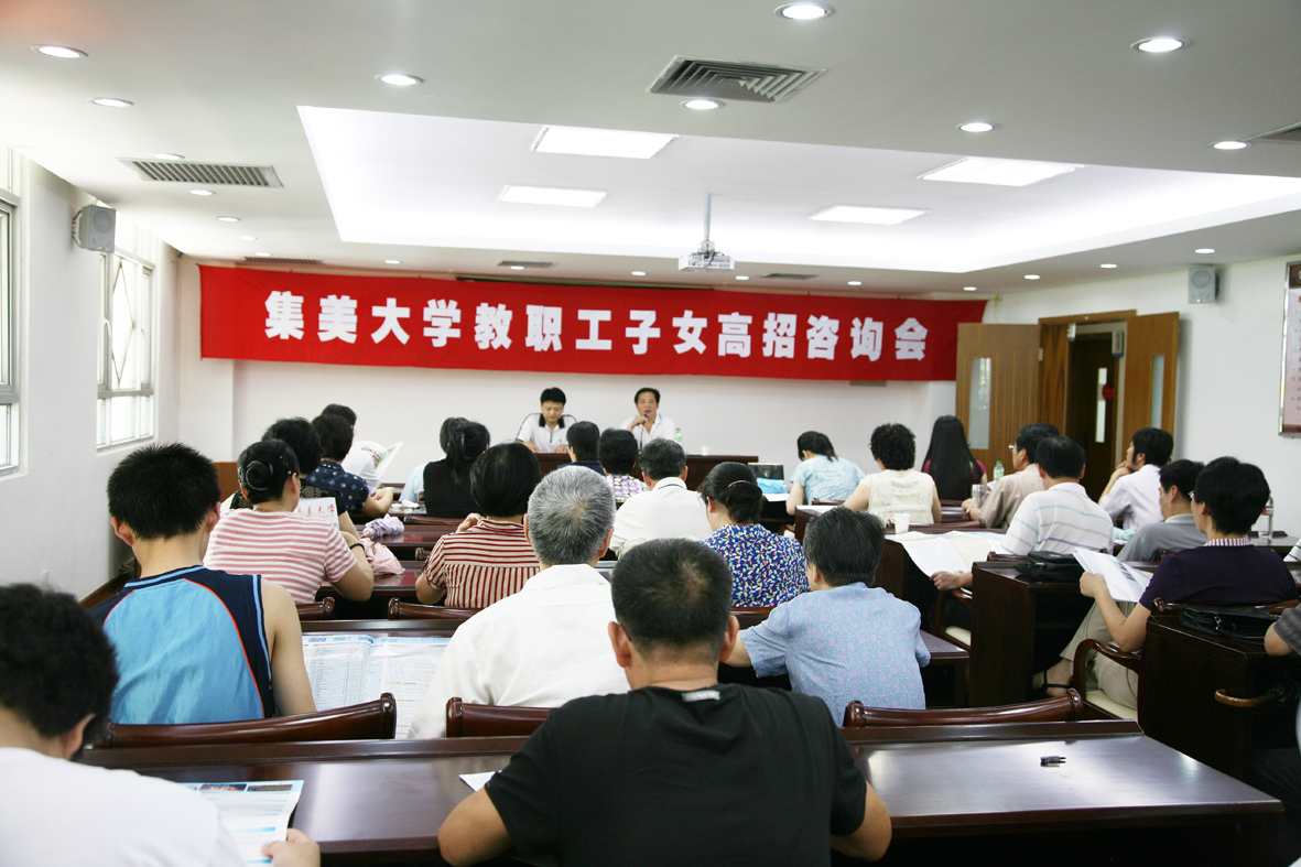 6月19日下午,校工会与招生办联合举办的2008年教职工子女高招咨询会在教工活动中心二楼多媒体教室举行。今天到会的教职工近40人,他们都急切地想了解一些今年高招的信息,校招生办和诚毅学院招生办的同志热情地把今年集美大学和集美大学诚毅学院的招生资料送给每位到会的教职工手中。