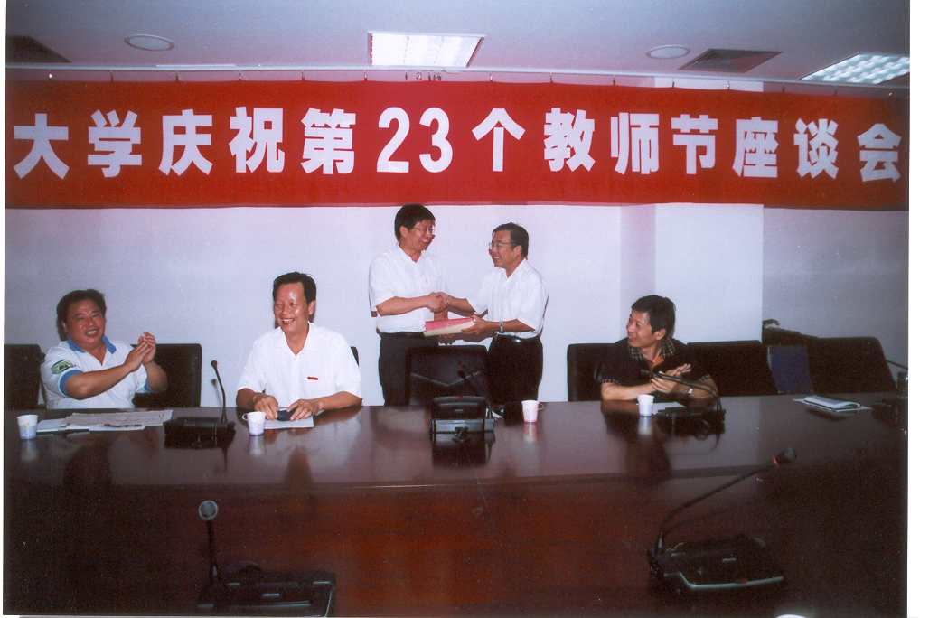 李金水主席主持座谈会,他首先对各位标兵、劳模、先进个人表示节日的问候,对荣获6·18海峡两岸职工创新成果展奖同志表示祝贺,并通过大家向全校教职工致以教师节的节日问候,祝大家教师节愉快!接着,李主席宣读了我校在福建省6·18海峡两岸职工创新成果展获得金奖和银奖的名单,辜建德、林耀坤为获奖的杨国豪、张杏谷、苏国成颁发奖状、奖金。