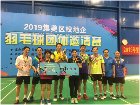 近期,由共青团集美区委员会、集美区青年联合会主办,集美区羽毛球协会承办的“2019集美区校地企羽毛球团体邀请赛”顺利落幕,集美大学代表队获第三名。