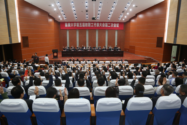 闭幕式表决通过了《集美大学教师职务续聘条例(草案)》《集美大学教师职务高聘条例(草案)》《集美大学教职工考核暂行规定(草案)》《集美大学教职工代表大会实施细则(草案)》和大会决议。会议号召全校教职工以时不我待、只争朝夕的精神,主动作为,担当奉献,全力推进我校一流大学建设。