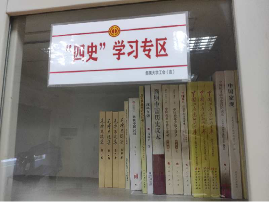 近日,校工会在水产学院、计算机工程学院等九个部门工会小家设"四史"学习专区,并在每个学习专区置《中国共产党的九十年》、《习近平新时代中国特色社会主义思想学习纲要》等学习书籍20余册,为教职工强化政治素养提供平台。