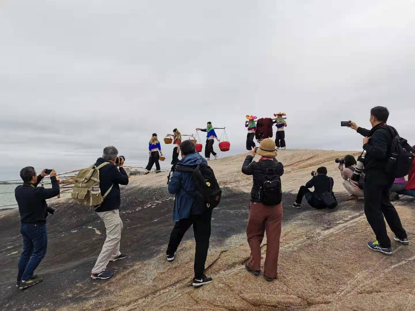 下午,团队来到大祚的惠女民俗风情园。风情园背山面海而建,园中歺厅、茶馆、博物馆、观光栈道等应有尽有。园内不但集中展现清朝到现在惠安女服饰的变化,以及惠安女手工艺品、劳作农具、生活用品、家居用品等,还是摄影爱好者的采风创作基地。景区安排的惠安女模特为大家演绎各种劳作场景,摄影师们纷纷举起相机,从不同角度定格这美好的时刻。