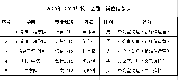 根据报名情况,经面试,校工会勤工岗位招聘结果如下: