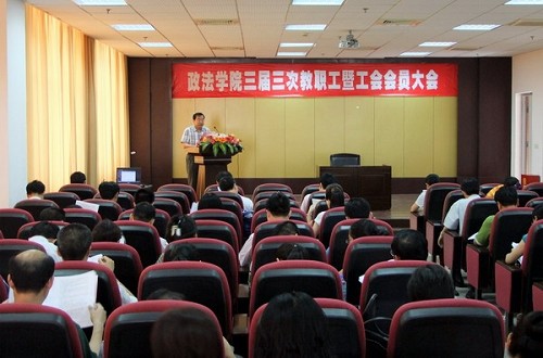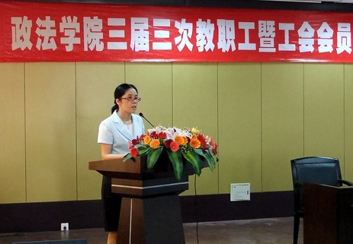 6月8日下午,政法学院召开三届三次教职工暨工会会员大会,大会由学院党委书记、部门工会主席庄丽榕主持,全体教职工参加了会议。