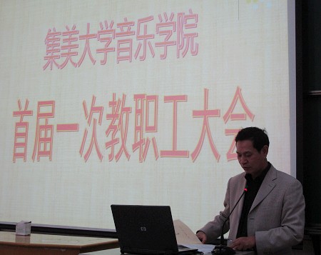 为进一步加强民主政治建设,促进学院教育、教学工作的顺利开展,音乐学院于2010年12月30日下午召开首届一次教职工大会,会议由学院党总支副书记康延津主持,校工会副主席庄东升应邀出席了大会。