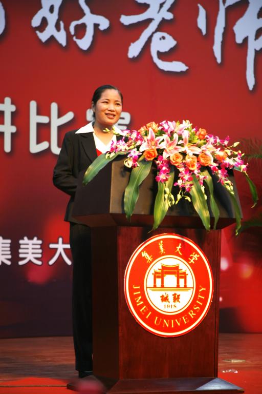 当天共有10名选手进入决赛,包括教师教育学院、音乐学院、政法学院、工商管理学院、海外教育学院、成教学院等多名强手,我院英语教研室陈美贤老师第8位出场演讲。她满怀深情地为大家讲述自己与教育这片热土的不解之缘,她时而激昂,时而温柔,声情并茂,感人至深,让在场的听众们都真切地感受到她对教师这份职业的无限热爱。其他选手也以丰富的教学案例、前沿的教学思路、如何当好一名教师的深刻思考,诠释了“德高为师、身正为范”的高尚情操,展示了新时期教师无私的情怀。