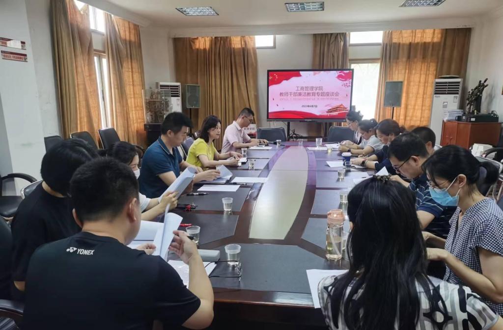 为加强学院师德师风建设,筑牢教师干部拒腐防变的思想防线,近日,工商管理学院在学院一楼会议室举办教 师干部廉洁教育暨师德师风座谈会。院党委书记陈娟、党委副书记董欣胜、教师代表、干部代表参与会议。
